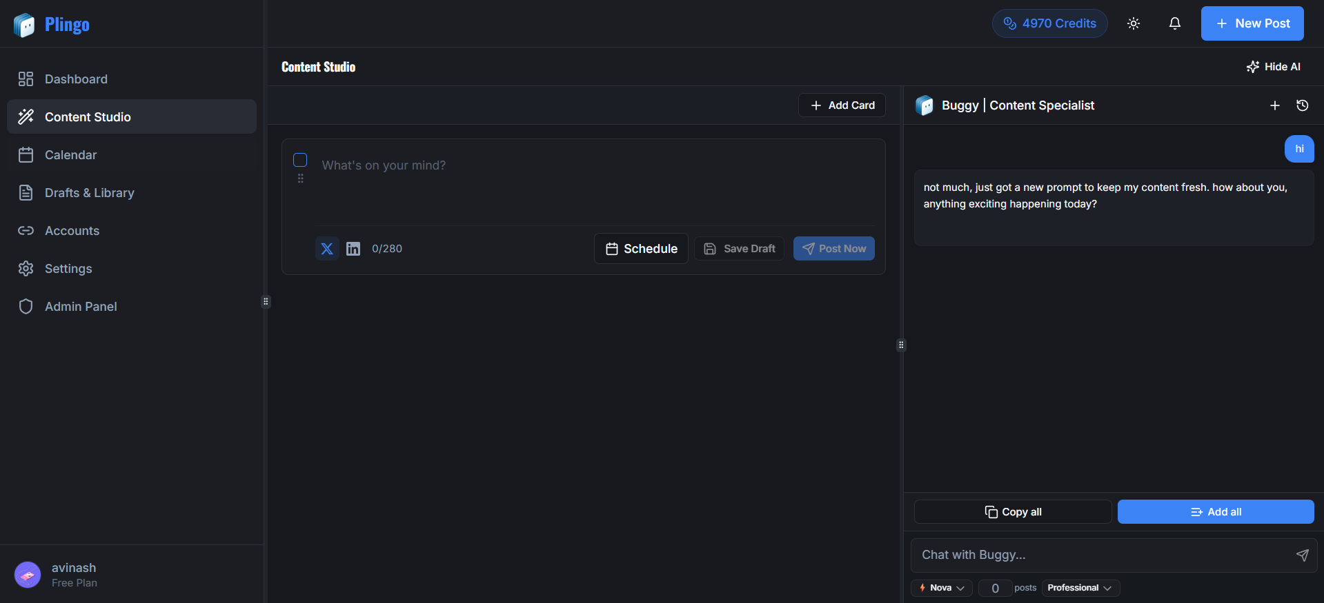 Beyond basic scheduling, Plingo incorporates smart features like timezone-aware posting, draft management, and post analytics to help users understand what resonates with their audience. The platform was designed with scalability in mind, ready to support additional platforms and team collaboration features as it evolves.